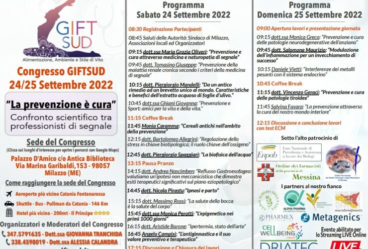 Congresso GIFTSUD 24 e 25 settembre presso Palazzo D’Amico Milazzo (Me)