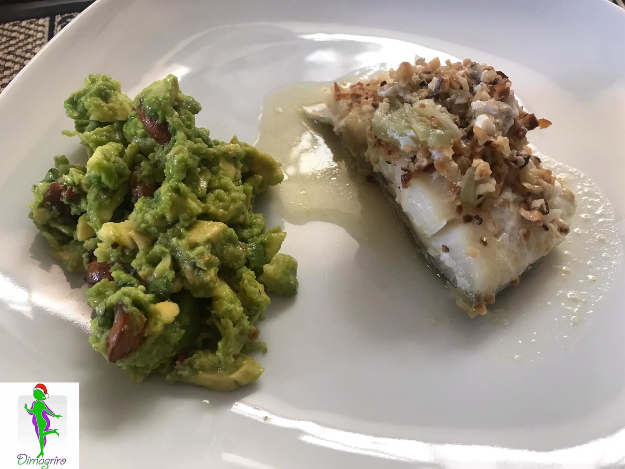 A parte, prendere l'avocado, eliminare il seme, e con l'aiuto di un cucchiaio, mettere il tutto in una ciotola e unire le mandorle, aggiungere un cucchiaio di olio e qualche grano di pepe rosa ed amalgamare il tutto. Quando andrete ad impiattare, sceglierete a vostro piacimento , se fare un un letto con l'avocado insaporito e porre sopra il baccalà appena cotto oppure fare come nella foto, mettendo vicine le due parti del piatto ma, ricordate di gustare il tutto insieme. Buon appetito!!!