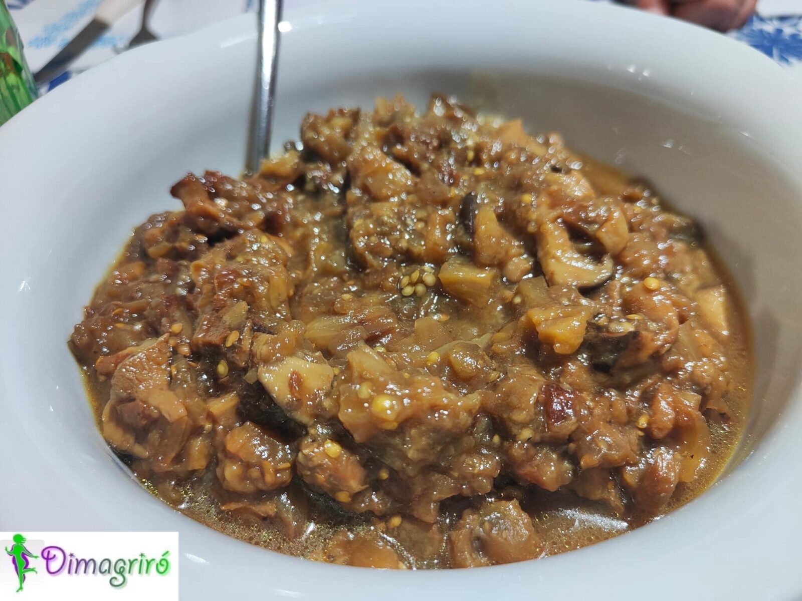 Pulire e tagliare a pezzi piccoli (circa 2 cm) cipolle e melanzane viola