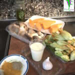 nel frattempo grattugiare lo zenzero (circa due cucchiai) preparare quindi un intingolo aggiungendo con il succo di due limoni, l'EVO, il sale e il timo (due rametti), infine il peperoncino;