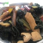 ed unire alla carne, aggiungendo un bicchiere di acqua, un pizzico di sale integrale, di pepe nero e di curry. Fare cuocere tutto insieme a fuoco medio per 20 minuti, mescolare di tanto intanto finchè il tutto non risulterà tutto amalgamato