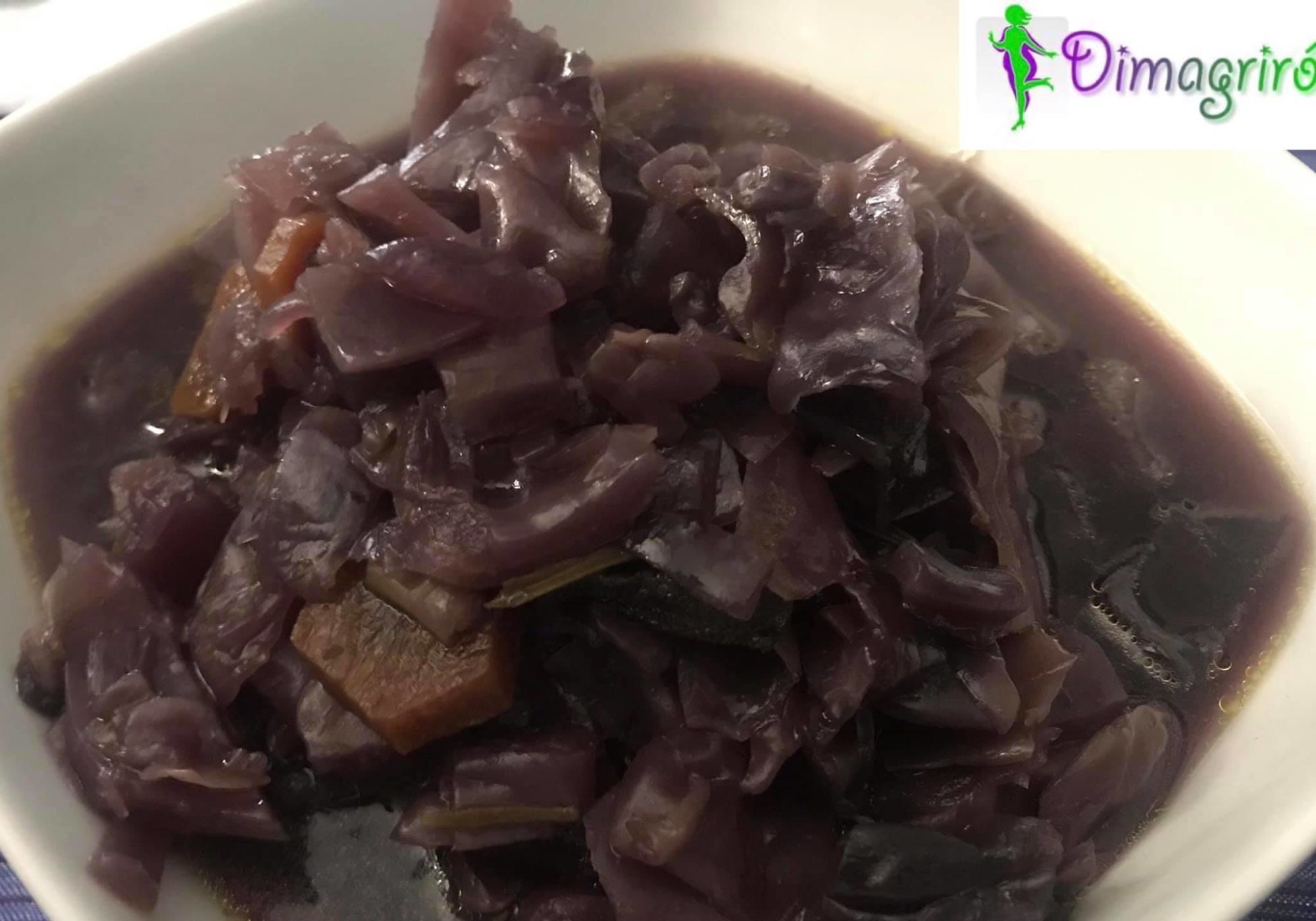 Prendere un cavolo viola, lavare e tagliare a listarelle (1 cm circa),pulire carote e cipolle, eliminare apice e pedice e tagliare il tutto a pezzetti piccoli (1 cm circa)