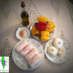 sul fondo di una teglia piccola di alluminio alta e adeguata adagiare le fettine di limone e di zenzero distribuendo poi un cucchiaio d'olio evo;