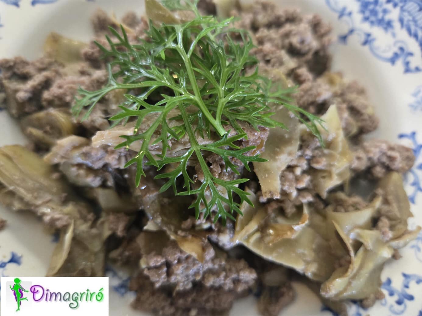 Pulire e tagliare i carciofi, lasciandoli in acqua acidulata (con limone); in una padella unire l'evo con la polvere di aglio ed i carciofi, fare insaporire il tutto a fuoco basso per 10 minuti.