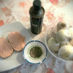 prendere una casseruola o una teglia usa e getta (come ho fatto io) e mettere sulla base le cipolle tagliate un pizzico di sale ed uno di pepe;