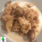 Quando la cipolla inizia ad imbiondire unite lo spezzatino di pollo alla cipolla e lasciate rosolare;
