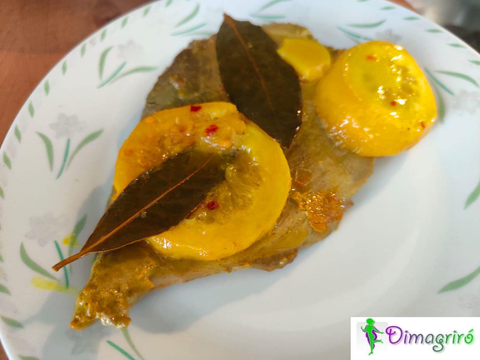 Uire il succo di un limone e le fette di un secondo limone (1 cm circa), insieme a curry e foglie di peperoncino. Unire le fette di tonno e cucinare il tutto per 5 minuti